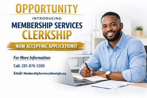 Apply to serve as a volunteer in the Membership Services Clerkship Program at New Light Church.